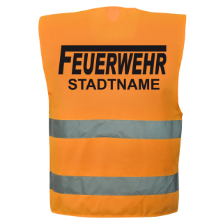 Feuerwehr Warnweste Orange in 10 Größen mit Stadtnamen